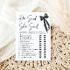 O Arco Negro que ele disse que ela disse que o jogo do Chá de panela é uma maneira sofisticada e divertida de trazer risos e alegria para a sua celebração. Apresentando um design arco preto chic, este jogo convida os hóspedes a adivinhar se a noiva ou o noivo disseram certas declarações. É a maneira perfeita de despertar conversas, compartilhar histórias doces, e descobrir quão bem todos conhecem o casal feliz. Adicione um toque de elegância e diversão ao seu chá de panela com este jogo delicioso! 💍 🎀 ✨