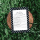 Desfrute deste jogo de chá de fraldas Quem Sabe Ser Melhor Pai? em um fundo preto com bolinhas brancas. Modelos para a frente, com um arco de bebê preto com fundo branco. Combina com a coleção Charming Black and White.