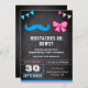 Entusiasmem seus hóspedes com este gênero fofo que revela um convite com bigode azul e um arco cor-de-rosa com tipografia moderna contra um fundo de quadro. Basta adicionar os detalhes do seu evento neste modelo fácil de usar para torná-lo um convite de tipo único.