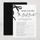 Celebre no estilo chic com este elegante jogo de chá de panela "Quem conhece melhor a noiva?". Com um arco preto, design de aquarela minimalista e caligrafia moderna, esta atividade imprimível é perfeita para chás de panela de coquetes ou festas de solteira pretas e brancas. Detalhes caprichosos e desenhados à mão o tornam divertido e sofisticado — ideal para a noiva moderna que ama o estilo do eterno.