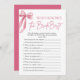 Teste o conhecimento dos seus convidados com o nosso jogo de Chá de panela "Quem Conhece Melhor A Noiva". Com seu charmoso design cor-de-rosa, este jogo adiciona um toque de elegância à sua celebração enquanto os convidados competem para ver quem conhece melhor a noiva. Da trivialidade sobre suas coisas favoritas às memórias compartilhadas, este jogo certamente provocará risos e competição amigável entre amigos e família.
