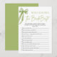 Teste o conhecimento dos seus convidados com o nosso que conhece o melhor jogo de Chá de panela da noiva. Com seu charmoso design verde arco, este jogo adiciona um toque de elegância à sua celebração enquanto os convidados competem para ver quem conhece melhor a noiva. Da trivialidade sobre suas coisas favoritas às memórias compartilhadas, este jogo certamente provocará risos e competição amigável entre amigos e família.