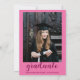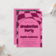 Celebre sua grande conquista com estilo usando este convite de festa de formatura cor-de-rosa moderno, apresentando um design ousado e inspirado no estilo retrô. A frente exibe um padrão xadrez ondulado divertido com um layout de arco moderno e tipografia chamativa, enquanto a parte de trás inclui uma foto personalizável do formando para um toque pessoal e memorável.