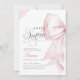 Apresentando o doce convite de 16 anos de aniversário do Arco Rosa Esmagado Este convite elegante apresenta um arco cor-de-rosa pincelado e uma fita de rendas rústicas.