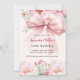 Um elegante fundo cor-de-rosa esbranquiçado, decorado com um grande arco rosa e flores cor-de-rosa. Personalize e adicione um nome e detalhes da parte.