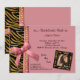 Fita cor-de-rosa e pérolas douradas com listras de zebra pretas e douradas decoram este convite de festas contemporâneo. Carregue sua própria foto no quadro de zebra funky para personalizar ainda mais o olhar. Há muito texto personalizável neste convite de tendência para adicionar suas informações de participante. Nós também temos este design em várias cores. Coordenar cores na parte de trás deste convite completa a aparência e torna este design premium perfeito para quase todas as ocasiões.