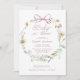 Arco Rosa de Flor Selvagem Bebê Em Convite Para Chá de fraldas De Sangue Este convite elegante apresenta flores silvestres de cor d'água delicadas, um arco de cor d'água e letras escritas à mão.