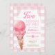 Arco Rosa Duas Colheres De segundo aniversário Divertido Convite Gingham