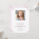 Celebre a Primeira Comunhão do seu filho com este convite maravilhosamente desenhado. Apresentando sotaques cor-de-rosa suave, uma delicada cruz e detalhes charmosos do arco nos cantos, esta carta exude graça e doçura. O fundo branco limpo melhora o aspecto sofisticado, enquanto a mistura de scripts elegantes e fontes serif modernas cria um estilo de eterno. A foto da peça central permite que você adicione um toque pessoal, fazer que seja um bem-estar apreciado para familiares e amigos. B005