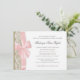 Lace branco elegante com um arco rosa bonito sobre a burlap country rustic, design para primeira comunhão sagrada, batismo ou qualquer ocasião. Alterar texto como preferido. Todas as partes desta parte do convite são um design gráfico impresso, não há nenhuma toca real, rendas ou fita conectada.