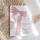 Celebrar a chegada de uma doce menina com este elegante convite para chás de fraldas, tema-arco rosa. Apresentando uma paleta de cor rosa suave, um design de arco suave e um texto personalizável, este convite é perfeito para definir o tom de um evento memorável. Personalize com seus detalhes para um toque verdadeiramente único. Ideal para chás de fraldas tradicionais ou modernos!