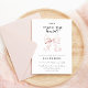 chá de panela temático "Ela é casando" com uma elegante ilustração de arco rosa.