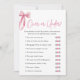 Eleve a diversão com o nosso jogo de Chá de panela "Sobre ou Sob" com um elegante design rosa arco. Os convidados gostarão de adivinhar se determinados fatos relacionados ao casamento estão acima ou abaixo do número correto, acrescentando uma encantadora reviravolta à sua celebração. Este jogo encoraja competição amigável e riso, fazer-o uma adição memorável às suas festividades de chá de panela.