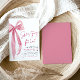Anuncie a próxima comemoração com elegância e charme usando nosso Chá de panela Rosa Esbranquiçado Ela é Casando. Esse convite exude sofisticação, capturando a essência de uma ocasião alegre. A paleta cor-de-rosa pincelada adiciona um toque de romance, enquanto o delicado arco simboliza a amarração do nó em uma bela união. A escolha de fontes e layout complementa o design geral, criando um convite que é clássico e moderno. Perfeito para um chá de panela cheio de amor e riso, este convite dá o tom para um evento onde cada detalhe é tão maravilhosamente trabalhado como o amor que está sendo celebrado. Compartilhe o entusiasmo e antecipação com seus convidados através deste adorável convite. 🎀 💍