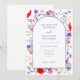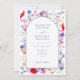Convite de casamento em arco roxo elegante com aguarela floral linda e flores silvestres coloridas, ideal para casamento na primavera ou verão. Um design caprichoso, mas elegante, com tipografia moderna e modelos fáceis de personalizar em roxo. As pinturas de flores silvestres incluem papoulas vermelhas vibrantes, centáureas, cosmos, miosótis e ranúnculos em roxo, rosa, pêssego, verde-sage, azul-turquesa, laranja e azul. Arte botânica original da artista Catherine Sweetman.