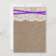 Estas fitas roxas com arco na braçadeira rustica e chá ou convites de festas de cadarço branco vintage farão o anúncio perfeito para qualquer noiva e noiva! A design apresenta uma faixa roxa adorável com arco sobre um fundo de efeito de burlap com efeito romântico com efeito de renda branca vintage. Esses convites podem ser personalizados para sua ocasião especial e farão o anúncio perfeito para qualquer casamento rústico, chá de panela, festa de noivado, festa de aniversário e muito, muito mais. *Observe que o Zazzle só vende convites impressos para que esses convites não tenham nenhum material de fita, arco, burlap ou local real.