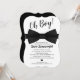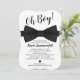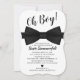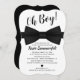 Contemporâneo convite para chás de fraldas para convidar seus amigos e família para comemorar seu filho em breve. Apresentando um clássico fundo branco, um título 'Oh Boy!', uma sofisticada gravata de arco preto, um coração negro e um modelo moderno de chá de fraldas que é fácil de usar.