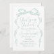 Elegante, os convites de chá de panela de casando dela apresentam um elegante Arco de Fita Desenhada à Mão com fontes modernas de script manuscritas em verde-claro, limpo e simples. Excelente para casamento romântico moderno, casamento maravilhoso e divertido, casamento casual elegante. Veja todas as peças correspondentes na coleção.
