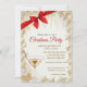 Um convite elegante para festas de férias com um copo de champanhe, luzes de cordas, arco vermelho e estrelas douradas em um creambackground. Estes belos convites de Natal são perfeitos para convites de festas de janto de Natal, convites para troca de presentes de Natal, angariadores de fundos de Natal, convites para bolas de férias e outros eventos realizados durante dezembro. Use apenas os campos modelo para adicionar suas próprias informações de evento.