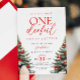Arco Vermelho Winter Onerderland Girl primeiro aniversario Invitation with pinheiros and red arco Details.