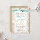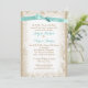 Burlap tinha impresso design em tons castanhos quentes e rendas brancas e um convite para o casamento de uma fita aqua bonito. Todas as partes deste convite não estão impressas em lugar real ou em fita.