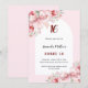 Um quadro de arco branco e fundo de rosa claro. Decorado com flores rosa e arcos cor-de-rosa. Personalize e adicione um nome, idade e detalhes.