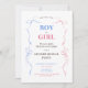 Esse gênero de bebê revela convite de festas encantador adornado com ilustrações brancas de arcos cor-de-rosa e azuis, simbolizando as cores tradicionais associadas a meninas e meninos. O topo e os lados do convite exibem um arranjo lúdico de arcos, com matizes cor-de-rosa e azuis alternados, criando uma estética visualmente atraente e equilibrada. Fitas deliciosas e de cor pastel em cascata de cada arco, acrescentando um toque de elegância e alegria à design. O fundo do convite é uma sombra suave e neutra, garantindo que os arcos vibrantes se destacam. O texto, escrito em uma fonte sofisticada, convida convidados a se juntar ao entusiasmo de descobrir o gênero do bebê, complementando perfeitamente o tema geral de antecipação e celebração.