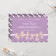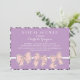 Cartão de convite branco e roxo lavanda e rosa suave. Um doce design com fitas e arcos bonitos no fundo. Padrão de riscas no fundo. Design de boliche moderno e chic para convite para chá de panela, convite para chá de fraldas, festa de aniversário, casamento, festa de noivado e muito mais. Personalizar o texto para qualquer ocasião especial.