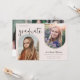 Comemore o novo formando com este anúncio de graduação único com belos arcos de ouro mostrando suas fotos de mais velho em um design sem falhas. Personalize com o nome do formando, a escola, os planos futuros e os detalhes do evento no verso, ao lado de outras 5 fotos favoritas do formando. Esta é a versão rosa esbranquiçada.
