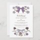Cartões de modelo de convite para casamento, coquetes e rusticidade, com ilustração desenhada à mão de arcos e flores em cores lilás. Personalize este convite adicionando suas próprias informações de casamento.