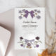 Cartões modelo de coquete e chá de panela rusticidade com ilustração desenhada à mão de arcos e flores em cores lilás.