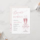Este convite elegante apresenta um copo de champanhe cor-de-rosa adornado com um arco e pérolas cor-de-rosa, com pérolas adicionais ao fundo. Perfeito para um brunch ou brunch bridal moderno e celebração à bolha, o design de aquarela e o roteiro elegante de caligrafia adicionam um toque de sofisticação. Personalize-o com os detalhes do seu evento para criar um na moda e um convite memorável.