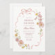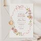Chá de panela com um quadro de flores cor-de-água rosa com fitas e arcos. Personalize com suas informações para que a noiva seja. Clique em "clicar para personalizar mais" para alterar o estilo, o tamanho ou a cor da fonte.