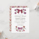 Tema do arco Boho convite de janto de ensaio de casamento com ilustração desenhada manualmente da fita magenta com flores.
