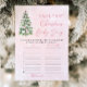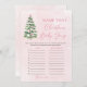 O nome da árvore de natal dos Arcos cor-de-rosa que o Jogo do Chá de fraldas de Tune de Natal é uma atividade alegre e festiva perfeita para a sua celebração de fim de ano! Apresentando um charmoso design com arcos cor-de-rosa, árvores de Natal e um fundo cor-de-rosa nevado, este jogo convida os convidados a adivinhar canções de férias com "bebê" no título ou letra. Perfeito para o chá de inverno de uma menina, ele adiciona riso, música e alegria sazonal, fazer seu evento inesquecível. 🎄 🎀 ✨