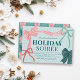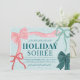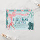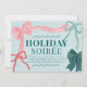 Celebre a temporada em estilo com este charmoso e inspirado em coquetes Convite de festas de Natal Feriado Soirée, com arcos desenhados à mão, cores suaves e um romântico design cheio de fita. A frente apresenta quatro arcos desenhados à mão — uma fita cor-de-rosa com faixas vermelhas, uma fita verde com faixas de marinho, mais dois acentos menores em vermelho e verde clássicos. O dorso oferece um fundo verde-pinho alpino macio com um padrão de arco delicado.