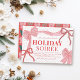 Celebre a temporada em estilo com este charmoso e inspirado em coquetes Convite de festas de Natal Feriado Soirée, com arcos desenhados à mão, cores suaves e um romântico design cheio de fita. A frente apresenta quatro arcos desenhados à mão — duas fitas cor-de-rosa com faixas vermelhas, mais dois acentos menores em vermelho e rosa clássicos. As costas oferecem um fundo vermelho alegre com um padrão de arco delicado.