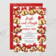 "Jingle and Mingle" com este estilo de coquete sinos de jingle natalícia e design de arco de "Feriado" com um quadro feito de sinos na frente e uma poeira estelar branca e fundo vermelho no verso.