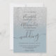 Casamento chic com um elegante gradiente brilho de luz cinza ombre com script elegante e moderno, brilha ombre em um azul empoeirado editável com uma caligrafia elegante e moderna.