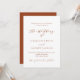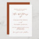 Frente: fundo branco, laranja queimado, texto colorido de terracota. Personalize e adicione seus nomes e detalhes. Fundo: fundo cor de laranja queimado.