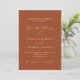 Um fundo cor de laranja queimado, terracota. Personalize e adicione seus nomes e detalhes. Voltar: adicione o URL do seu site de casamento ao código QR para obter detalhes e/ou RSVP