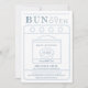 Este simples e moderno convite para o chá de fraldas virtual/online/zoom/facebook do "pão no forno" apresenta um pão no forno sobre fundo branco. O verso apresenta um fundo branco com listras azuis claras para bebês. Personalize-o para as suas necessidades. Você pode encontrar produtos correspondentes na minha loja.