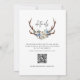 Este convite de casamento rústico de chic boho com chifres apresenta as iniciais monográficas da noiva e do noivo moldadas por chifres de fenda que são decorados com uma cor d'água azul empoeirada e buquê floral creme. No verso há um código QR com detalhes de RSVP. Entre em contato comigo através do Zazzle Chat se você precisar de ajustes de design, mais produtos correspondentes ou outras formas de cores.