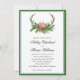 Com o estilo rústico encantador do feitiço, este convite para o casamento mostra cornos cervos embelezados lindamente com a cor d'água vergreens, bagas e um lindo cardeal vermelho. Uma borda verde-escura e complementar preta completa a design. Edite o texto de exemplo mostrado com seus detalhes de casamento. Adicione ou remova linhas de texto conforme necessário para refletir suas necessidades pessoais e estilo. Este convite é uma escolha encantadora para casamentos durante o inverno e a época de Natal.