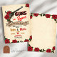 Armas Vintage e Rosas Gênero Revelam Convite, Bebê Rockstar Twins Raça Gênero, Gun Rosa vermelha Cowboy Ele ou Ela Revelam Convite,
