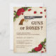 Incomodem seus hóspedes com esse gênero rústico revelem o convite com uma pistola vintage e belos rosas com tipografia moderna contra um pergaminho vintage. Basta adicionar os detalhes do seu evento neste modelo fácil de usar para torná-lo um convite de tipo único. Sacudir a placa para revelar uma textura rústica de madeira de celeiro na parte traseira da placa.