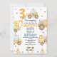 Modern Yellow Construction Dirty 3rdy Birthday Invitation Dirty 3rdy Birthday Invitation for boy apresentando vários veículos de construção, como caminhões de lixo e escavadoras, além de um grande número de idade amarela.