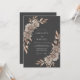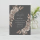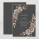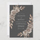 Este design elegante apresenta um delicado arranjo de flores cinzas suaves com toques de folhagem em rosa dourado. A composição artística evoca um clima sofisticado e refinado, perfeito para uma união elegante. A paleta de cores é uma mistura de neutros suaves e tons metálicos quentes.