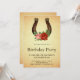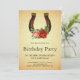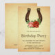 Surpreenda seus convidados com este elegante convite de aniversário apresentando uma bela ferradura vintage decorada com flores vintage contra um fundo de pergaminho rústico. Basta adicionar os detalhes do seu evento neste modelo fácil de usar para torná-lo um convite único.