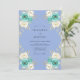 Um delicioso arranjo de flores turquesa e marfim com delicada folhagem dourada adorna este charmoso design. Evocando um sentido de elegância romântica, a obra de arte apresenta aglomerados florais pictóricos com uma sensação suave e aérea. Este estilo é perfeito para uma reunião sofisticada.
